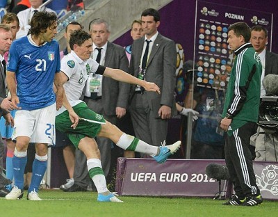 Trapattoni does not operate with any kind of democratic hierarchy. He’s more of an evil dictator. Normally you can overthrow a dictator but alas we’re stuck with him for the next two years because John Jerry McGuire Delaney showed him the money long before Paul Green was gloriously introduced against Spain. The real heroes that day were Xavi, Iniesta, and Alonso for not physically breaking into laughter when they saw this inanimate bag of cow droppings with legs saunter on to the pitch.