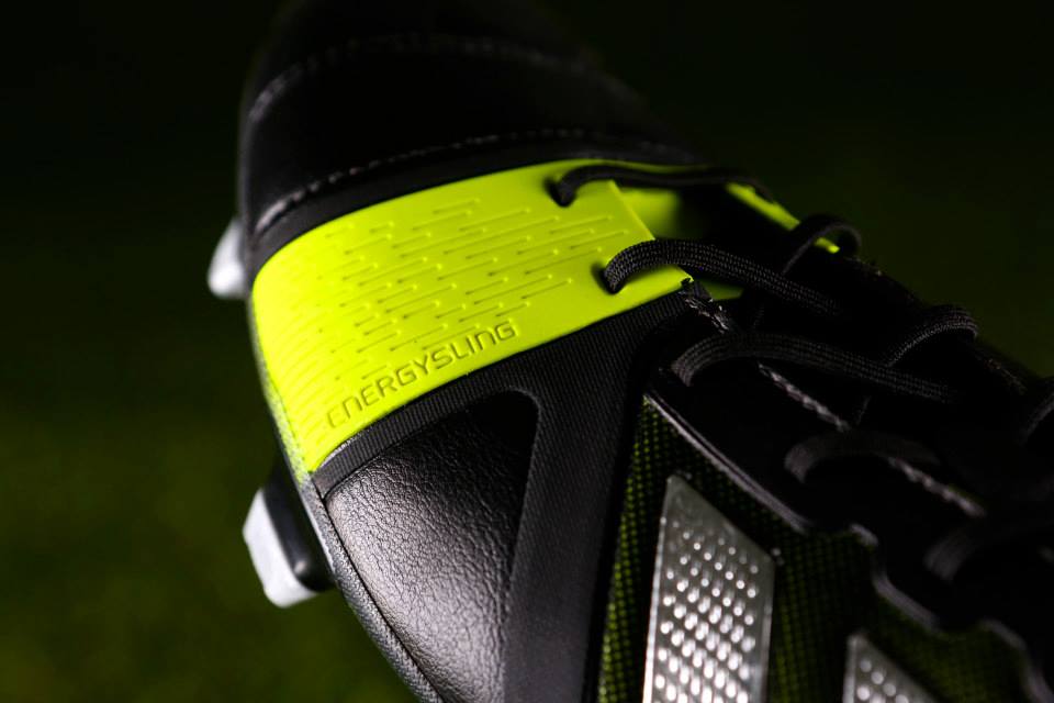 Adidas Black/Silver/Electricity Nitrocharge. The boot made from leather and synthetic hybrid, that brings high-speed support and traction when playing on firm pitches. The Nitrocharge football boots feature the Adidas Energysling lateral support. The highly elastic Energysling element in the upper was developed for energy return and stability for the players known as the engine of the midfield.