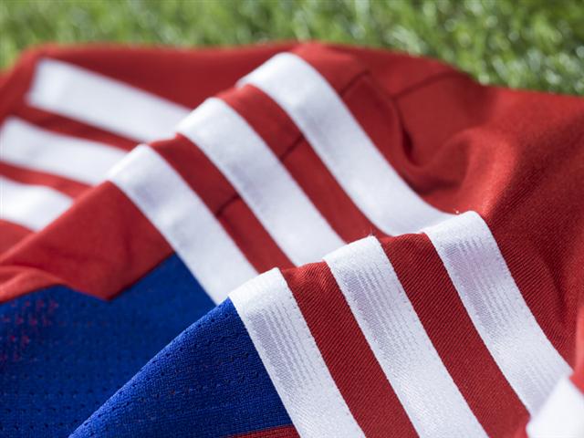 The Adidas design reverts back to a striped version emphasising the colours of the iconic club crest.