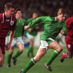 Byrne was part of the Euro 88 and Italia 90 squads without making an appearance. Scored four times for Ireland but his final outing in a green jersey was no doubt overshadowed by the fact that it was also the final game of Middlesbrough’s finest, and star of the Irish masters team , Bernie Slaven.