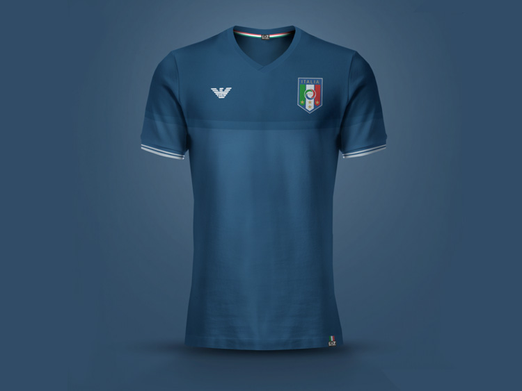 Artist Emilio Sansolini designs international football team shirts in the style of fashion brands from those countries.