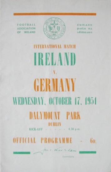 Ireland had also provided the opposition in one of Germany’s last games before the war when the sides clashed in Bremen in 1939. When a now divided West Germany returned to international competition in the wake of the conflict, Dalymount Park was the venue for a first overseas trip for the game on October 17, 1951.